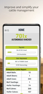 Autonomous Rancher® powered by 701x® gives livestock producers a one-stop solution to easily track and manage their cattle and their records. Our simple interface makes recording, managing, and accessing your records easier than ever. Make informed management decisions and keep track of valuable information regarding your calves, heifers, cows, and bulls – all in one place. Autonomous Rancher® is accessible from anywhere- even offline; it works where you work. Don’t just trust that your herd is performing well- get the data to prove it!