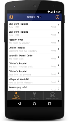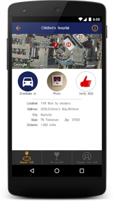 • Details include photo and directions to AED