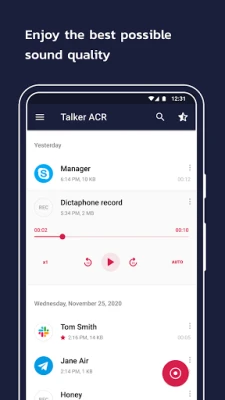 Talker call recorder ACR allows ensuring the clearest sound quality of recording on your Android device.