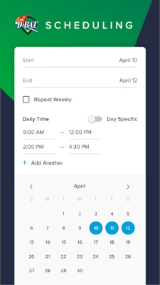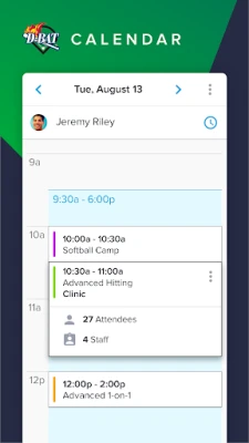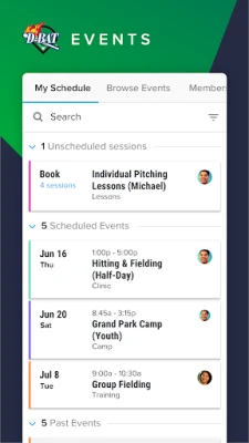 -Purchase Memberships, Private Lessons, Camps & Clinics, Cage Rentals and Retail Products. -Manage your schedule for any training events straight from the D-BAT Hub Calendar. -Receive notifications and training confirmations. -Update account settings and billing information. -Cancel events and/or change attendance status. -Communicate with D-BAT Staff & Customers.