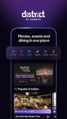 Explore curated experiences around you. Whether it’s shows, cinema, sports or a new place to dine in, District has it all on one app.