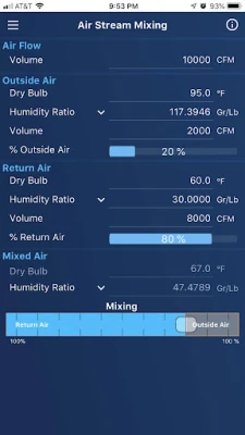 • Air Stream Mixing: Solve for mixed air conditions from any two airstreams