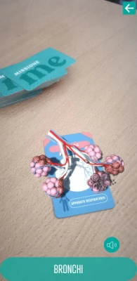 Missione Me è un'app che permette di visualizzare organi, sistemi e apparati del corpo umano in realtà aumentata, semplicemente inquadrando le carte gioco Missione Me.