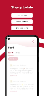 DISTRICT UPDATES In the Live Feed is where you’ll find updates from administration about what’s going on in the district right now. Whether that’s celebrating a student’s success, or reminding you about an upcoming deadline.