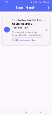 Whether you’re a beginner learning opening principles or an intermediate player sharpening your tactics, this app guides you move-by-move through the essential ideas, strategies, and traps of the Scotch Gambit.