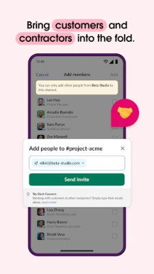 • Video chat directly in Slack, and share your screen to present and discuss work live.