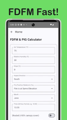• Calculate Fine Dead Fuel Moisture (FDFM) and Probability of Ignition (PIG) in an instant